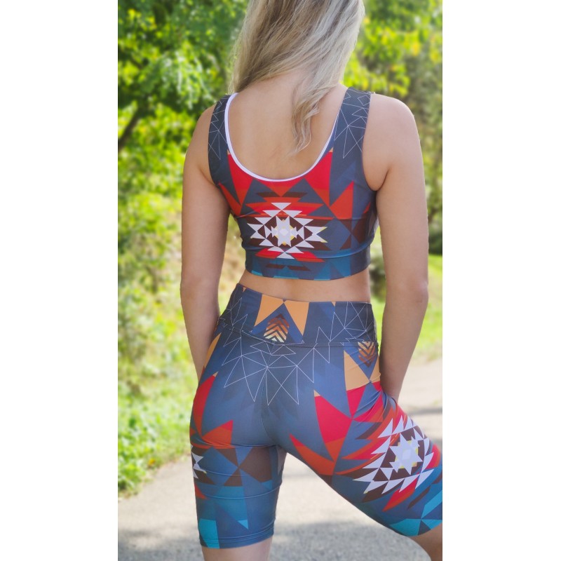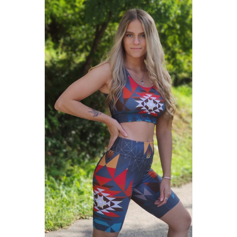 Tieto materiály sú špeciálne určené na techniku, pomocou ktorej celoplošne aplikujem svoj dizajn na látku. Materiál je veľmi príjemný na pokožku a dotyk. Celé legíny sú zošívané elastickými niťami ako aj na overlocku, tak aj prešívané na páse a členkoch trojihlou. Čiže sú určené aj pre náročnejšieho zákazníka, môžu sa preto okrem jógy využívať aj na iné športy ako tanec a beh.