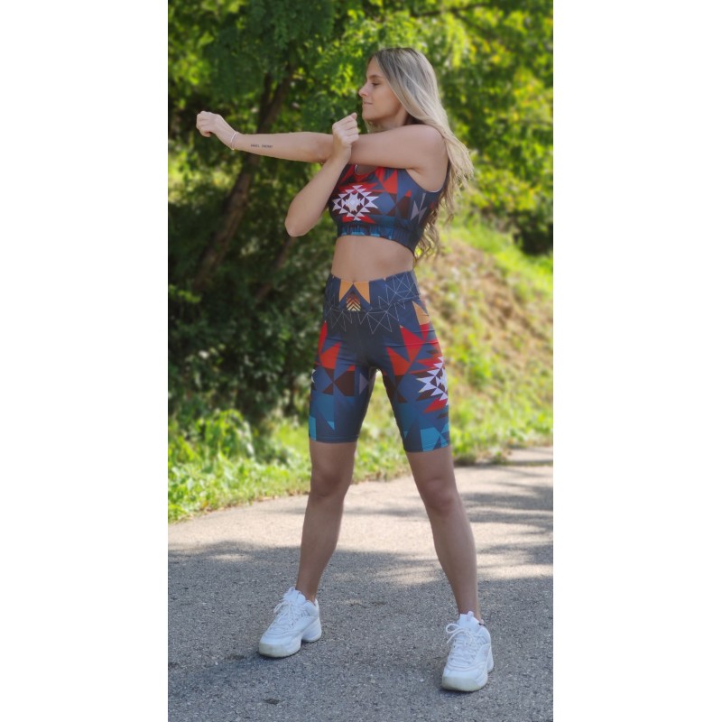 športový top je dvojvrstvový so skrytými ševmi a všitými gumičkami v prieramkoch a priekčníku