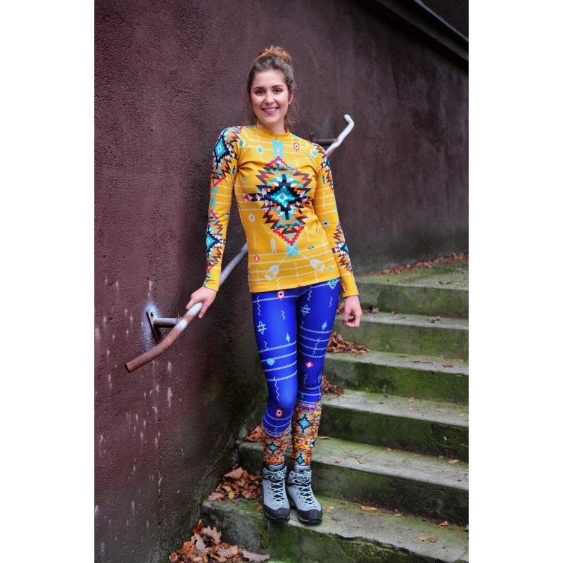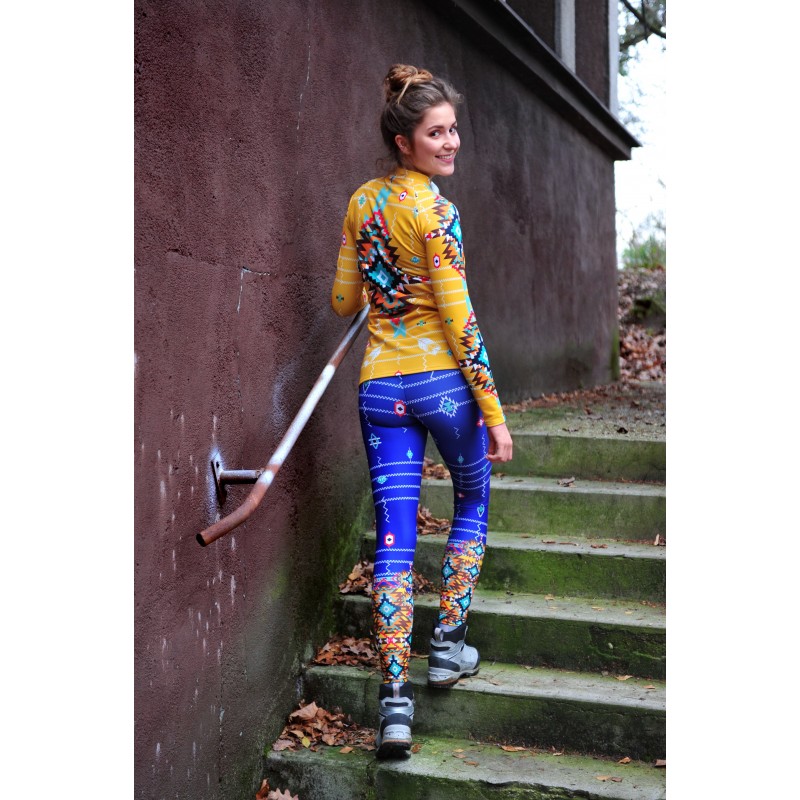 Kolekcia "Navajo tribe winter blue" v horčicovej modrej kombinacií kombinácií Vás nenechá chladnými. Veselý farebný autorský dizajn, funkčný termo materiál a praktické strihy robia z týchto kúskov obľúbené oblečenie nielen na svahu.